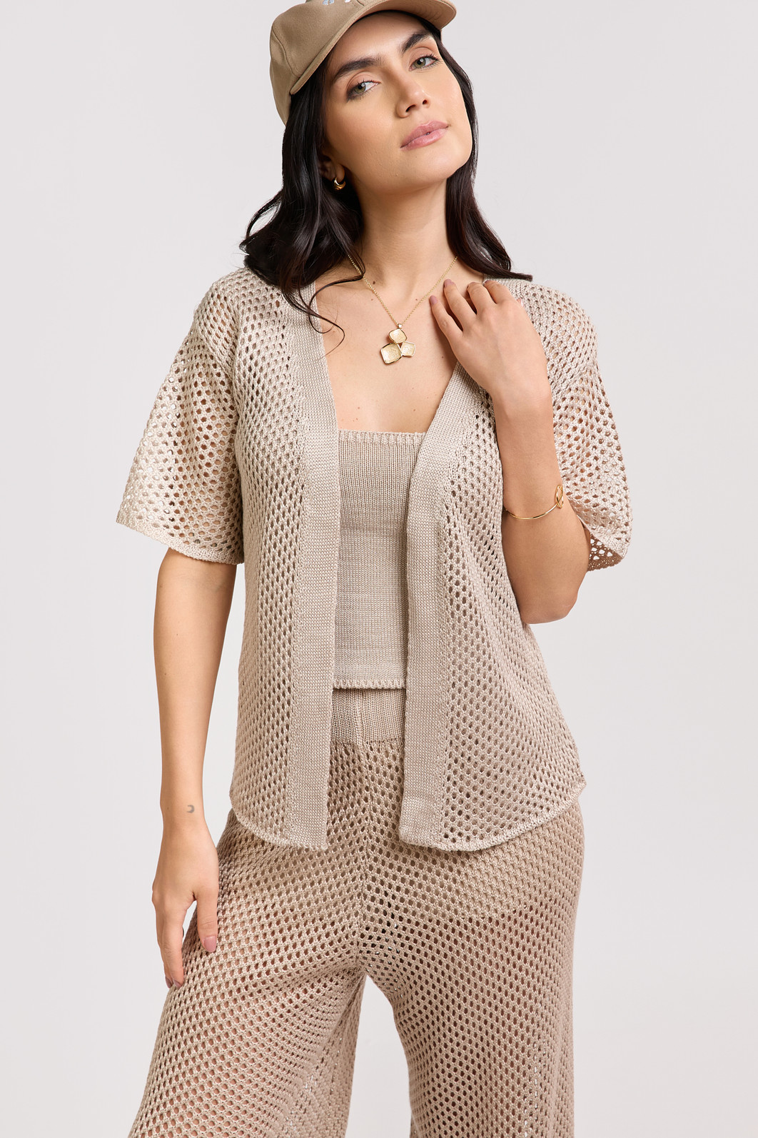 O cós canelado oferece ajuste confortável, enquanto o tricot vazado garante leveza e um visual atual ,tem um forro confortável. Ideal para usar com top ou biquíni por baixo, combinando estilo e frescor em uma única peça.